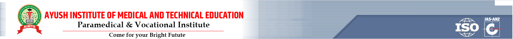 Ayush Institute of Medical and Technical Education is one of the Best Paramedical Institute in Meerut, popularly known as AIMTE. It is a training Partner of Glocal University Saharanpur for the B.Voc Paramedical and Vocational Programme and also Affiliated with UP State Paramedical Council Lucknow (an autonomous body). UP State Paramedical Council is an autonomous organization .Its Courses may not be valid for government jobs or higher education. but are useful for private sector. Ayush Education and Charitable Welfare Trust runs this Institute. The Institute has completed four years of Paramedical and Vocational education. Ayush Institute of Medical and Technical Education to promote Paramedical Health Education, Hotel Management Catering, Technology and Tourism, etc. sectors in our country.